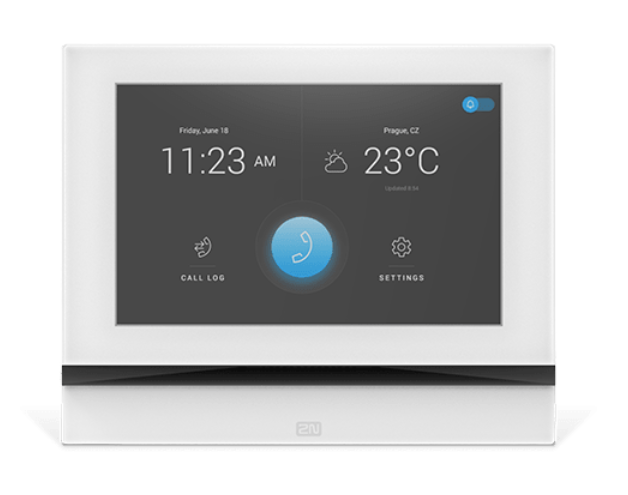 Dominantou odpovedajúcej jednotky 2N®Indoor View je 7″ širokouhlý dotykový displej. Povrch potvrdeného skla a štýlový design sa skvele hodí do luxusných rezidenčných projektov. Na inštaláciu potrebujete len jeden UTP kábel, inštalačnú krabicu do steny alebo na stenu. Náš vlastný operačný systém vám zaručuje spoľahlivosť jednotky a jednoduchú konfiguráciu.